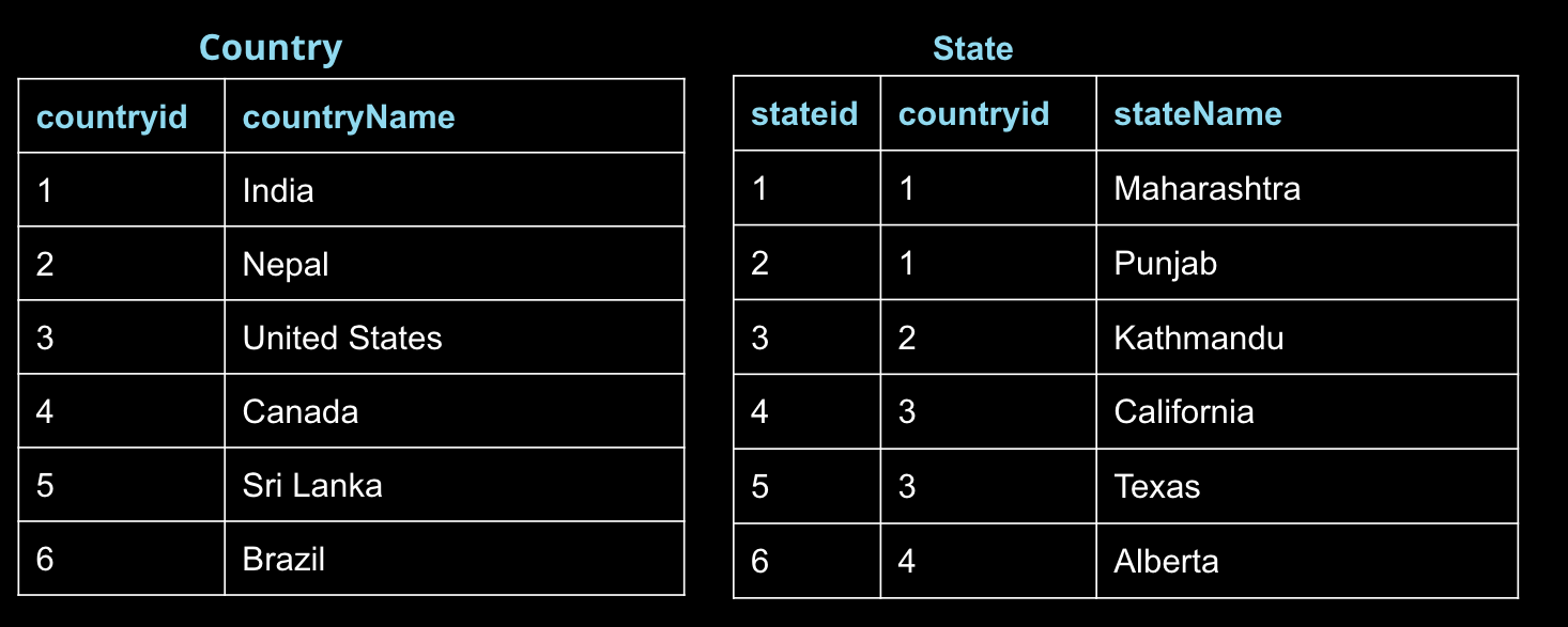We are essentially JOIN ing the matching PK - FK links from the two tables, as shown in the below image.